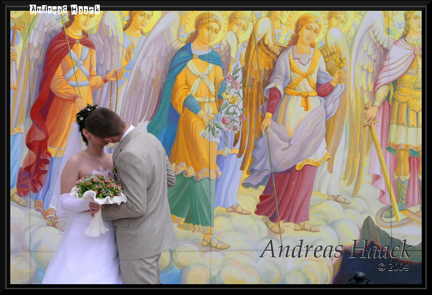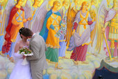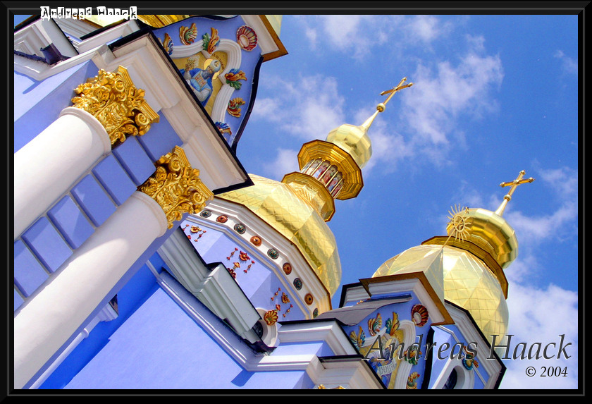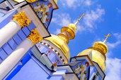 One of the attractions of Kiev is the many well resaturated churches with golden roofs. Right at the center there is the blue and white colored St. Sofia's cathedral on 500 meter further St. Michael's Church Complex. It has a nicely painted wall and is popular with freshly married couples.