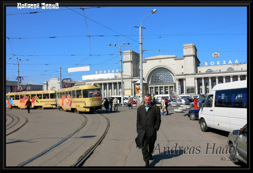 I was searching the Astroria Hotel (No 66) that was mentioned in the Lonely Planet Guide Book for 55 USD a night. It is quite difficult to locate as the streets lacks house numbering with just every kilometer numbers mentioned at the cross road. Anyway it is now a high priced hotel with prices starting from 660 UAH (122 USD) . Staff and taxi drivers did not want to help me to find another hotel, so I stayed at the neighbouring Astoria-Lux (No 66a) which had with 780 UAD the cheaper rooms available. It was a quite nice, warm and sunny spring day. I took the tram back. One can by a ticket in from the conductor inside for 0.5 UAH (0.1 USD). The is a simple flee-market every day which just seems to sell overpriced paintings.