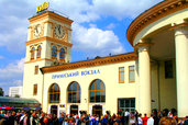 Walking arond the city you find a log of histoic sites. Gold covered churches St. Mykhaylivska (Michael's) Church, St Sophia's Cathedral od St Andrew's Church (Ukrainian: Андріївська церква;) but also modern points of interest like th Independence Square . Kiev is one of the oldest cities in Eastern Europe, dating back to the 5th century. As of 01-05-2005 no visa are required any more for western tourist entering the Ukraine. The airports have been updated to the western procedures. On my first entry in 2004 it was still the Soviet style procedures, although I was handed a colorful landing card in the aircraft, that was full of commercial adds, and I was tempted to refuse it. Nowadays this is a normal form and is the only thing to fill in. Although the capital has allot of western influence it is not New York or Paris. Since the fall of the Soviet Union two classes have developed: The rich and regular citizen. Much of the tourist infrastructure is priced for the rich rather then for the western tourist. Hotels with western standards have exclusive price tags of 150 to 500 USD. But surprisingly you find large old soviet style hotels at Khreschatyk in the cities center above the Globus shopping center which still charge 65 to 100 USD per night. Here you can feel how people lodged at Soviet times. These rooms have a simple interior a small bed (1.8m) a soviet charm bathroom with calk and worn down sine and shower. No air condition but you also could not open the window, and at the hallway sits a old lady, the ..., which controls who comes in. For breakfast one gets an orange juice, just bread and tasteless coffee.