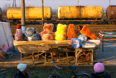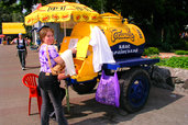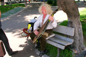 I turned right toward the river. The are modern western style shopping mall called EUROPE and MOST. Next to the MOST is a Internet cafe where you get one hour for 5 UAH (1 USD). In the night there where singers and may people enjoying the singers on the Karla Marxa street along with a couple of beers. Next morning I got a map and yellow pages in the hotel and reserved a room in the Dnjepropetrovsk hotel. This is a old Soviet style hotel. My room faced the river had wooden floor and carpet 2 smaller beds and a fridge a nice bathroom - every thing with soviet charmer but it was very nice and enjoyable - the best hotel I had. An the 285 UAH (56 USD) are not to top either. On Wednesday morning I got a taxi to the train station for 17 UAH (3.4 USD) and went back to Kiev.