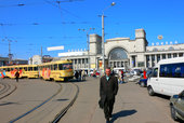 Behind the central train station are deparing a number of busses. There are also busses to the Borispol airport. One office large bus and a smaller mini bus are available. One trip cost 22 UAH (4.40 USD) on both type pf busses. The bus departs twice per hour and need 40 minutes to reach the airport One can also get a taxi which costs 100 UAH (20 USD).