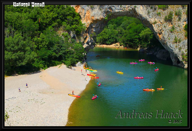 Am Morgen geht es weiter. Wir schlängeln und die Touristenroute D290 entlang - mit phantastischen Panorama auf die Ardèche. Hier gibt es ein Campingplatz neben den Anderen denn die Gegend ist bekannt bei Kajakfahrern. Am berühmten Pont d'Arc halten wir und bewundern die Kajakfahrer und die schöne Natur. Es gibt noch verschiedene andere Aussichtsbalkone von denen man eine wunderbaren Blick auf die Ardèche hat. Ziel von heute ist das Camping Apt in der westlichen Provence. Wir halten noch einmal bei einem Super-U Markt und erreichen den Camping Le Luberon um 16:30. Hier bleiben wir zwei Tage. Am Sonntag machen einen Fahrradausflug nach Apt.