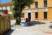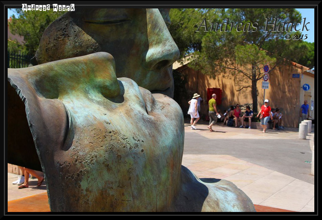 Wir starten gegen 13:00 Richtung Côte d'Azur. Über kurvige Landstrassen geht es via Dragiugnan zum Golfe de Sainte-Tropez. Uns ist klar das man an den schmalen Küstenstrassen bei Sainte-Tropez kaum vorankommt und wir wollen uns auch sicher nicht einen Besuch von Staint-Tropez mit den Wohnmobil antun. Daher ist das Ziel das Camping Les Mures in Staine-Maxime. Von dort aus werden wir dann Fahrradtouren unternehmen. Einen ersten Eindruck von der Verkehrssituation bekommen wir 5.7 km vor Sainte-Maxime. Denn hier ist erstmal Schluss. Es geht mehr stehend als fahren voran. Und schliesslich kommen wir nach ca 50 min dann doch noch im Camping an. Für die Strecke hat das Navi 9:10 Minuten berechnet, was schon 37 km/h entspräche. Wenn irgendwas passiert gibt es halt mangels Ausweichrouten sofort Stau. Am nächsten Tag gegen 11:00 machen wir uns bei 34ºC mit dem Fahrrad auf nach Staint-Tropez. Die 10.2 km lange Fahrradstrecke ist gut beschildert man braucht nur der Markierung zu folgen. Schliesslich kommen wir am Hafen von Saint Tropez an schliessen unsere Fahrräder gut ab und unternehmen die Besichtigung der Stadt zu Fuss. Am Hafen stehen allerlei imposante Jachten. Wir gehen am Kai entlang und je näher man zum Zentrum kommt desto grösser werden die Jachten. Ich möchte mit nicht ausmalen was der Unterhalt so einer Jacht kostet. Die Altstadt von Saint Tropez besteht aus bunten gelb-orange-rot gehaltenen mediterranen Häusern und die entsprechenden Souvenirshops und Restaurants fehlen auch nicht. Es ist sehr entspannend und wir Treffen auch noch aus die durch Louis Defunes bekannten Gebäude der Gendarmerie Nationale die sich gerade im Umbau zu einem Louis Defunes Museum befinden.